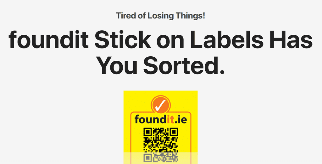 and then, when the item is found, the finder will simply scan the label with their phone, fill in the online form with details and the owner will receive an instant email letting them know where to collect their item. Please view here for more details https://foundit.ie/how-it-works/