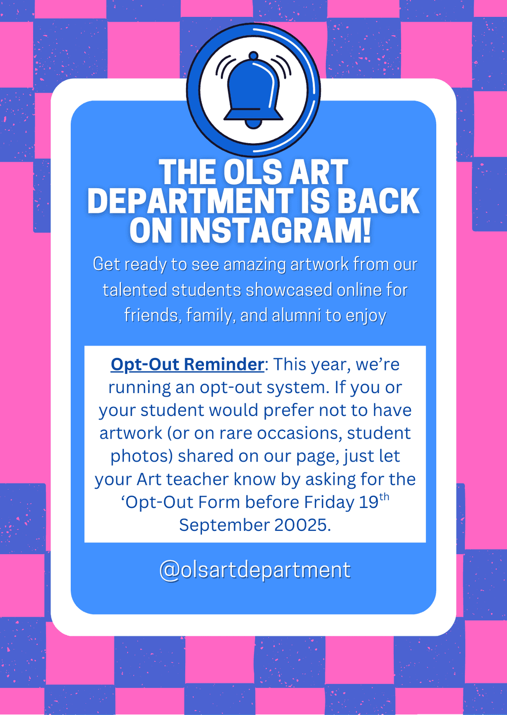 The Art Department showcases student work from time to time on their Art Department Instagram account – Art students have an opt out of this if they wish – please see further information below.